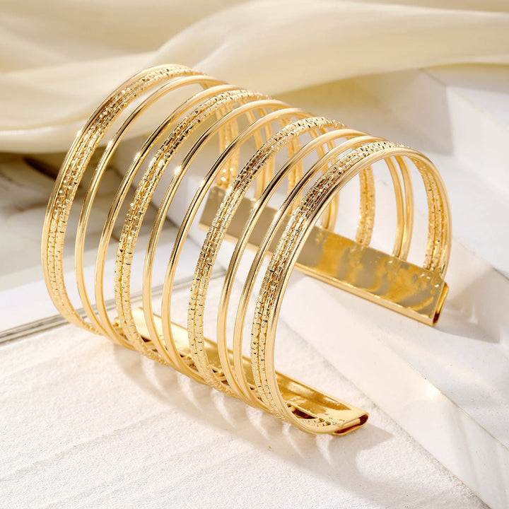 Elevate your accessory game with the Multi-Layer Frosted Open Bracelet, a piece that blends timeless elegance with modern charm. Featuring a frosted finish and a unique open-end design, this bracelet effortlessly complements both casual and formal ensembles. Crafted through precision electroplating, its durable alloy construction ensures long-lasting brilliance, making it the perfect addition to your jewelry collection.