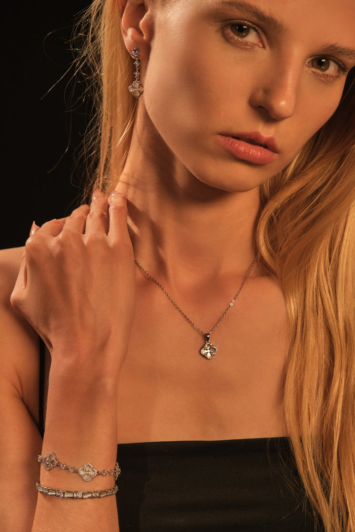 - Crafted from high-quality silver plating, natural shell pearls, and zirconia diamonds.