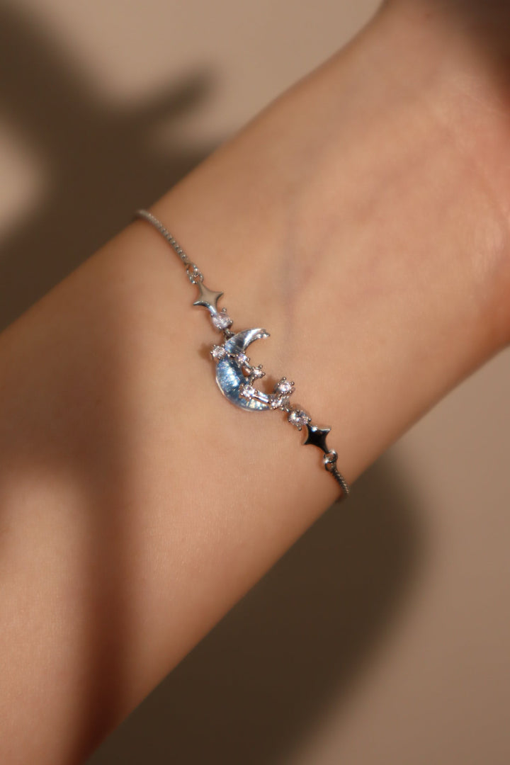 Natural Stone Mosaic Turquoise Moonstone Celestial Star Bracelet flickers goodbye to dullness and helps you stand out with its Platinum Plated Moonstone Moon Star design. With the right lighting, the zirconia diamonds add a captivating sparkle to your ensemble. This unique bracelet not only enhances your outfit but also makes a thoughtful gift for anyone special.